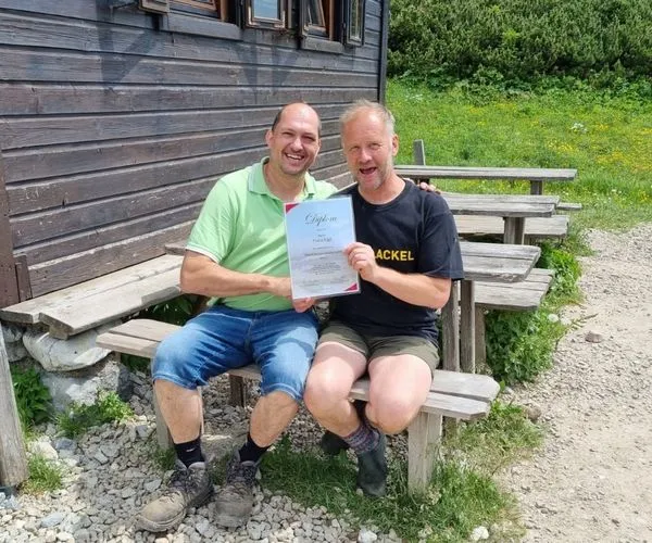 Im Juni besuchten wir ein letztes Mal den Hüttenwirt Franz Eggl auf seiner Seehütte auf der Rax. Bei diesem Besuch überraschten wir den langjährigen Hüttenwirt mit dem Diplom „Weltbester Hüttenwirt“.
